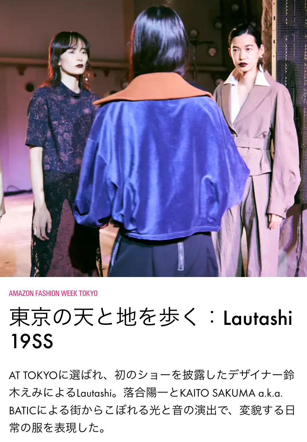 Sound installation for LAUTASHI2019SS @Amazon fashion week / 22.2ch / Generative music program /